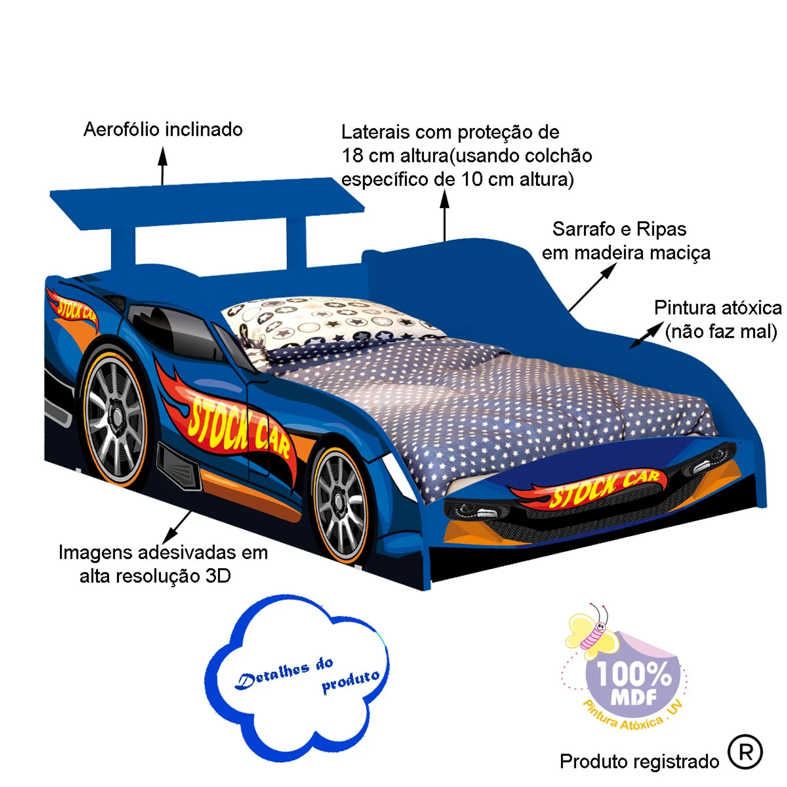Cama Juvenil Infantil Formato Carro Corrida Criança Stock Car Azul